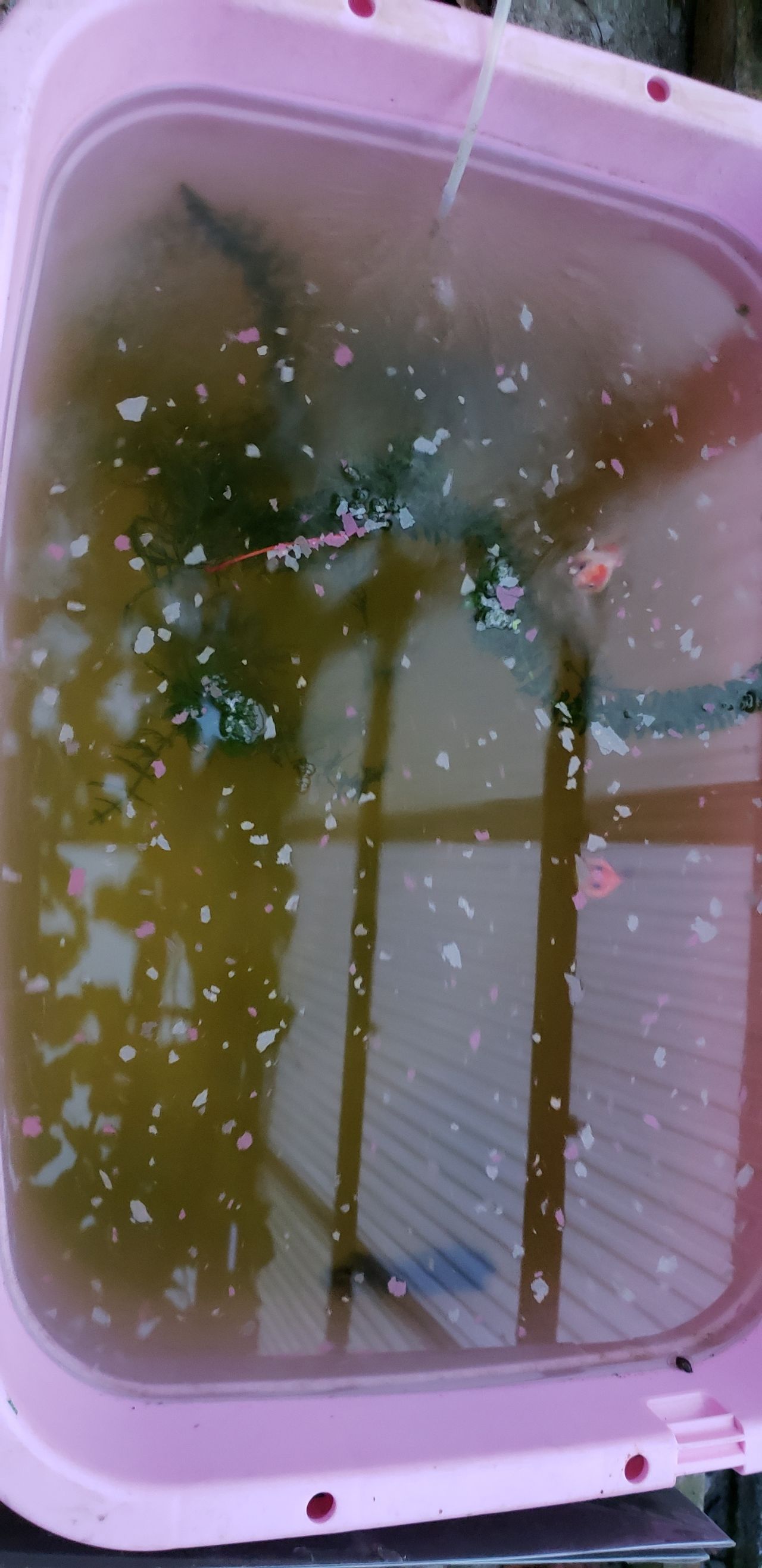 昨日は休みだったんで、グリーンウォーター気味だったんで、水を半分近く交換するも、まだ金魚の姿は底に沈んじゃえば見えないくらい。