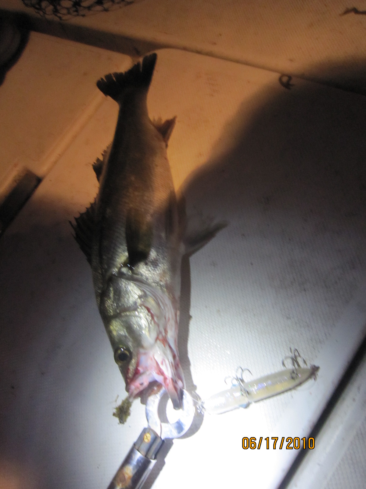 また爪ではじいて脳震盪でも起こしたら可愛そうなんで、ルアー作りの道具が入った箱を出す。