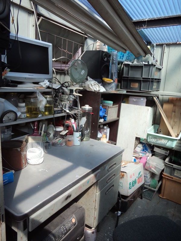 クリップ式の小型の扇風機じゃ間に合わんので、マーブル君の為に持って降りた扇風機を工房の中に。