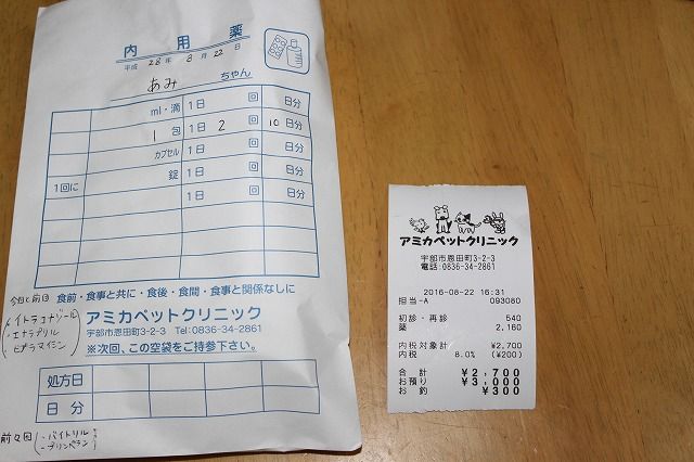一応、何があるか分からんし、薬だけ今日もらってきてもらい、2160円の出費。