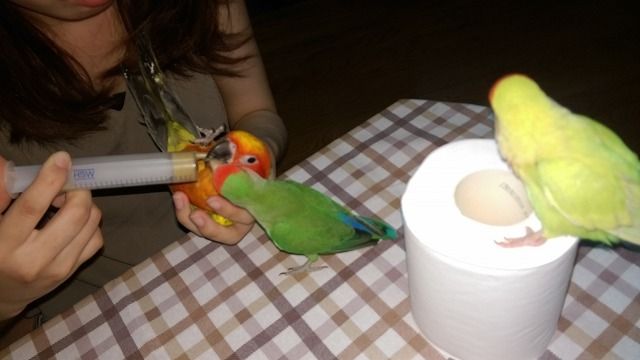 夜に、抗生物質をりんごジュースに混ぜ、シリンジであげてたら、すごく嫌がる。