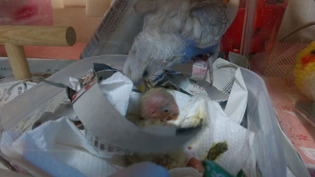 挿し餌の最中。