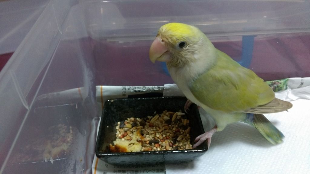 1羽でヒーター入りのガラスケース内で過ごしてます。